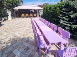 Pentru un plus de confort la evenimentele dumneavoastră, pe lângă toboganele gonflabile, punem la dispoziție și servicii de închiriere mese și scaune pentru adulți.